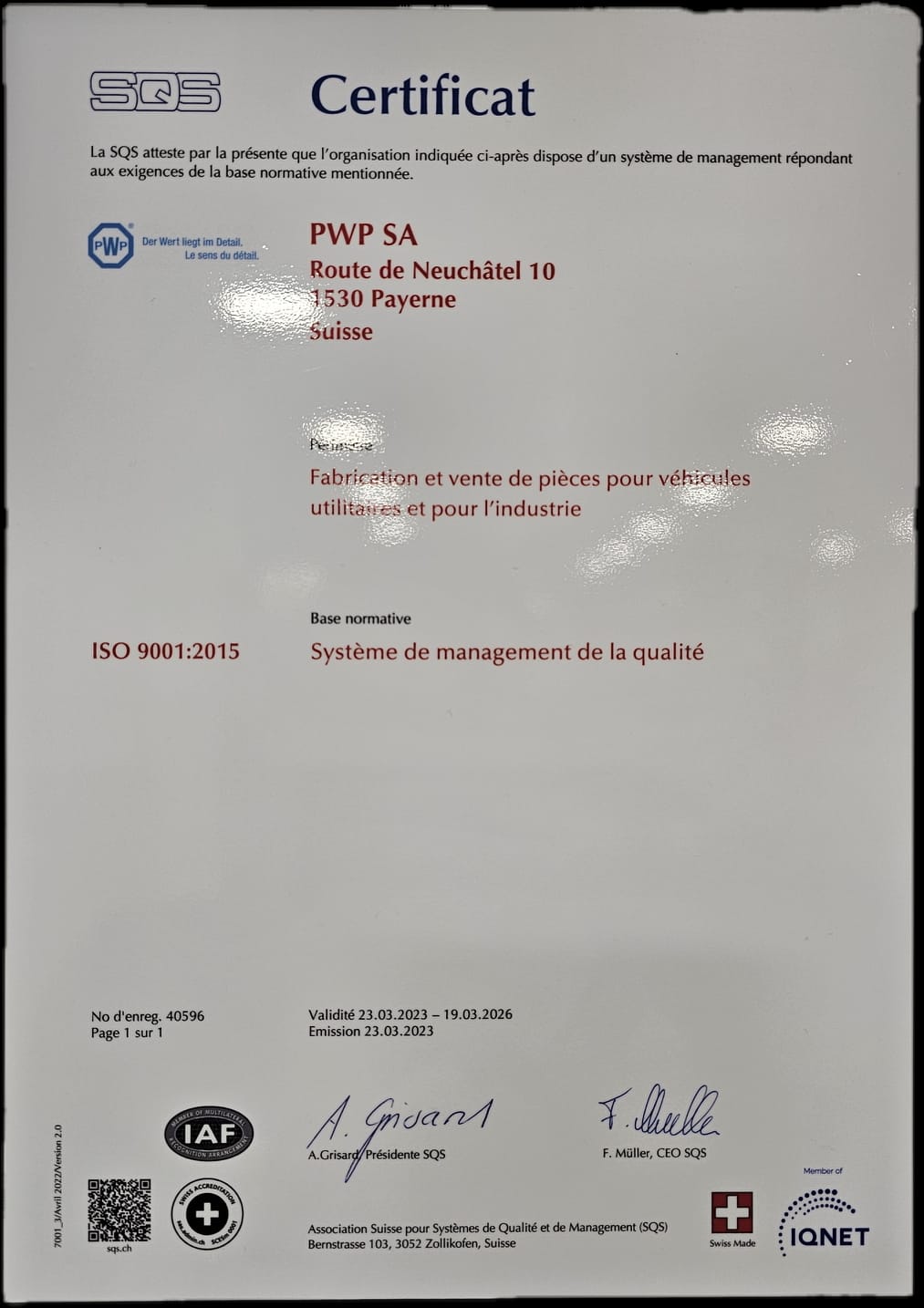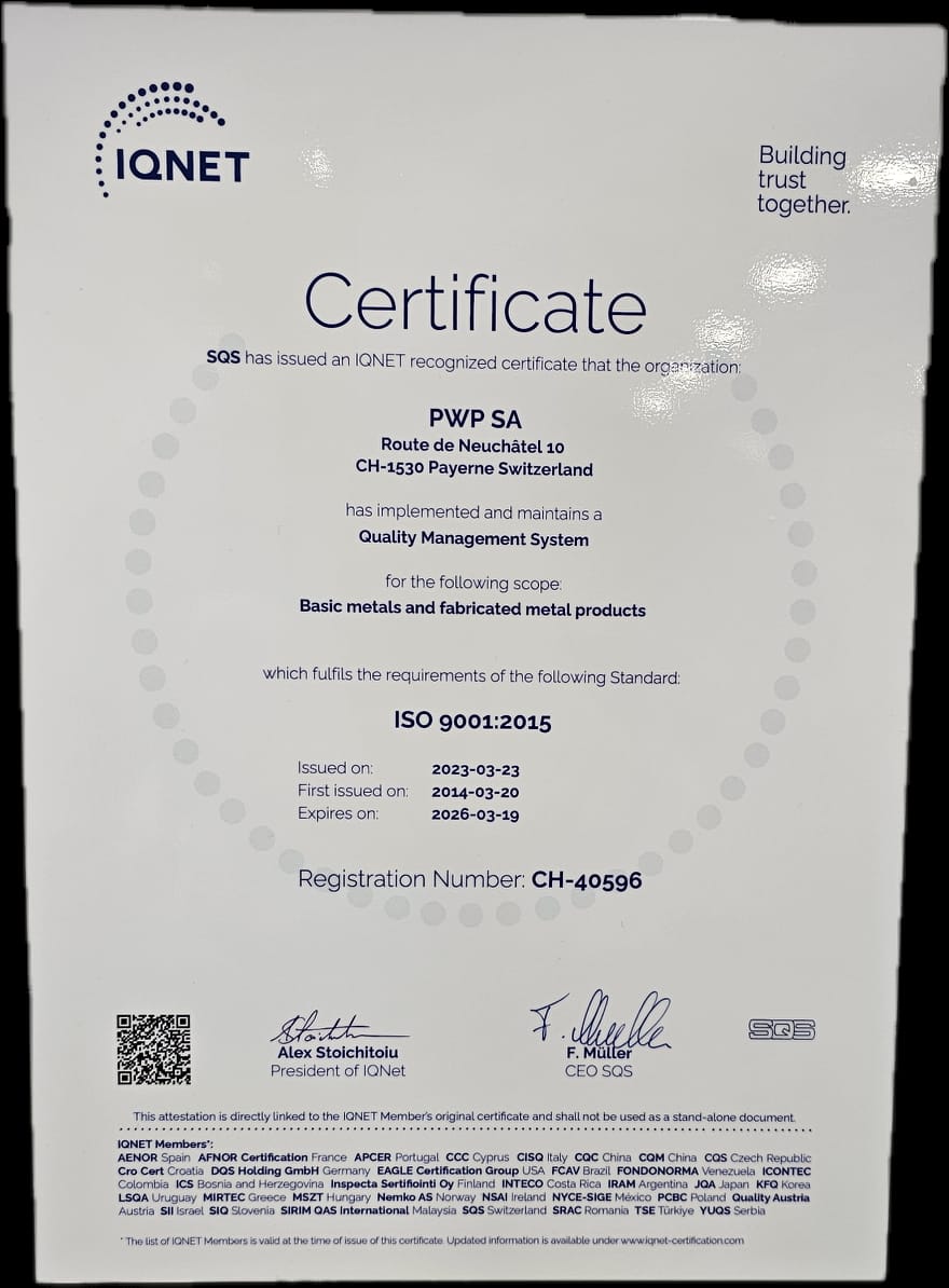 | ISO 9001:2015 | SQS | Système de gestion de la qualité | Fabrication et vente de composants et ensembles pour véhicules utilitaires et industrie |
